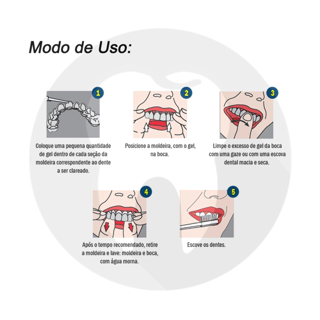 - Não ingerir o resíduo do gel. Lave bem a moldeira, com auxîlio de uma escova dental antes de guardá-las.