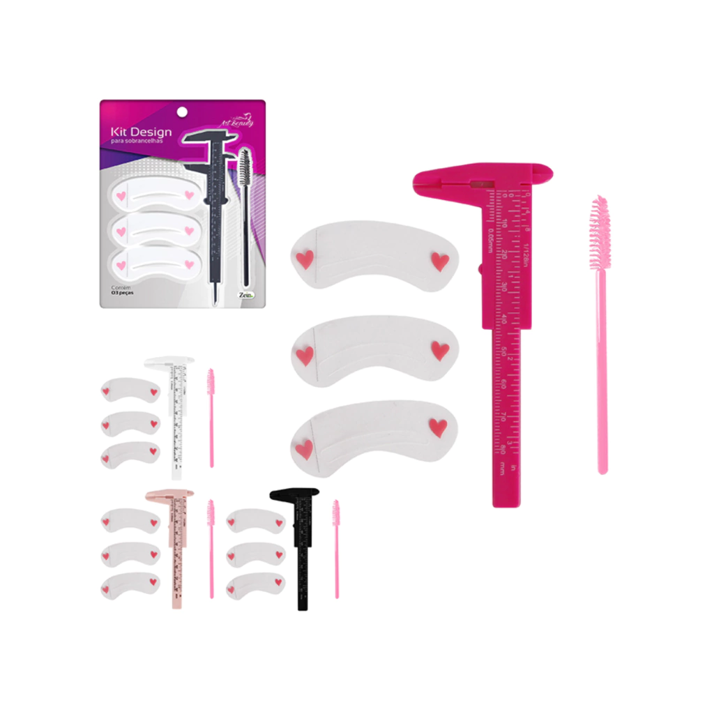 O Kit Design de Sobrancelhas da Art Beauty foi desenvolvido para definir o formato das sobrancelhas com praticidade e precisão. Com este kit você faz a medição, o molde (desenho) das sobrancelhas com exatidão.