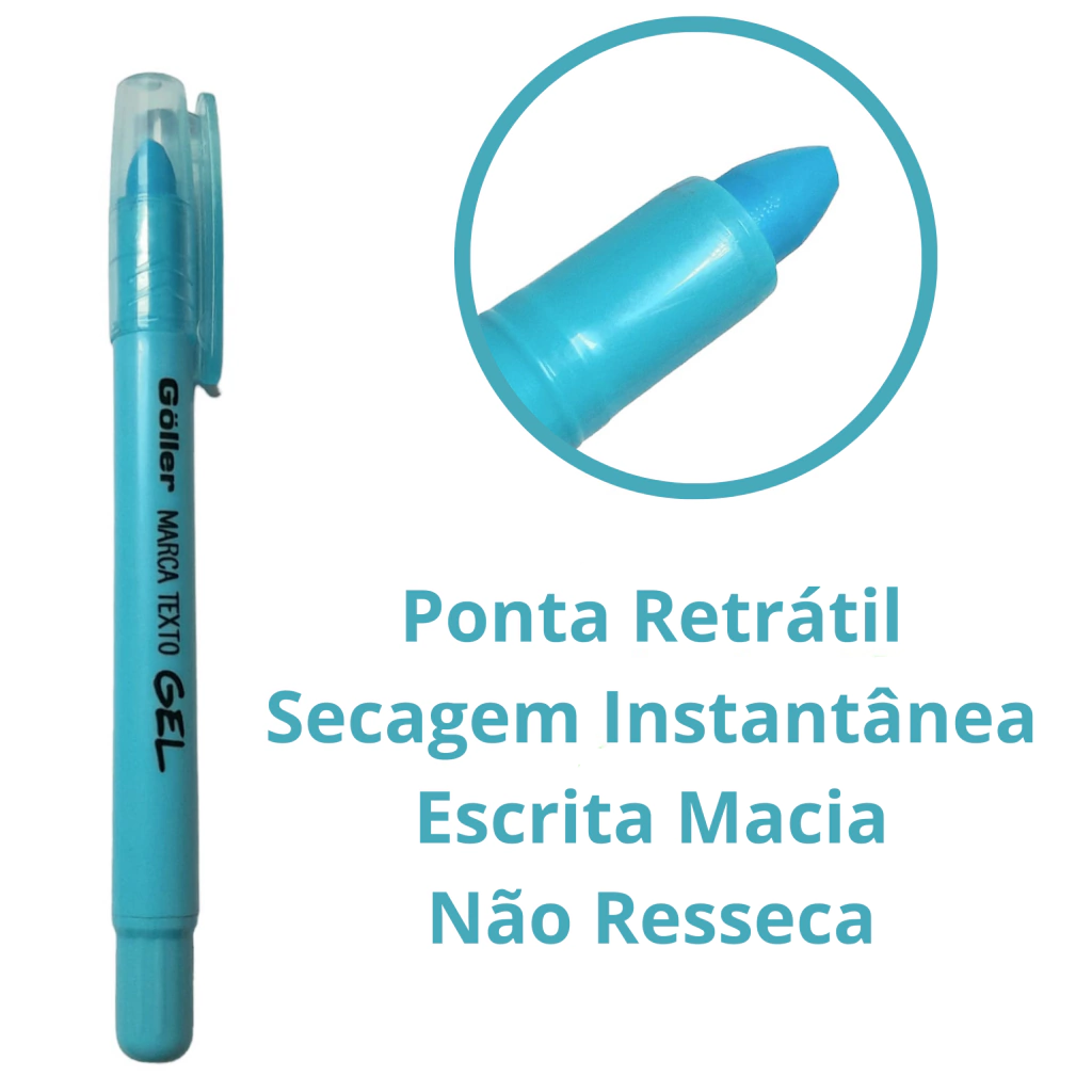 Marca Texto Gel Crayon Goller é o que faltava na sua rotina de estudos! Com ponta retrátil em gel, ele NÃO mancha o verso da folha e é IDEAL para você fazer seus destaques nas folhas mais finas, como de Bíblia e Vade Mecum.